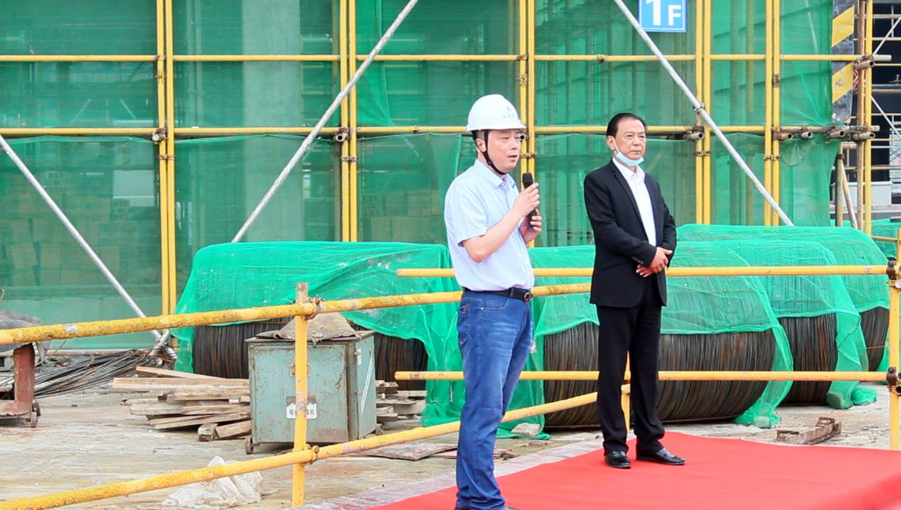 10时整,综合楼正式封底大吉,丽华集团董事长李董发表讲话